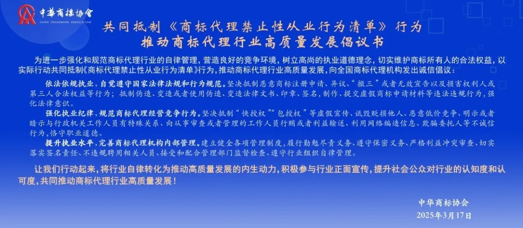 商标代理禁止性从业行为清单